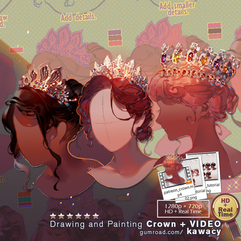 •Full-duration(50min 22sec) Progress Video of how to sketch → lineart → color Crown.