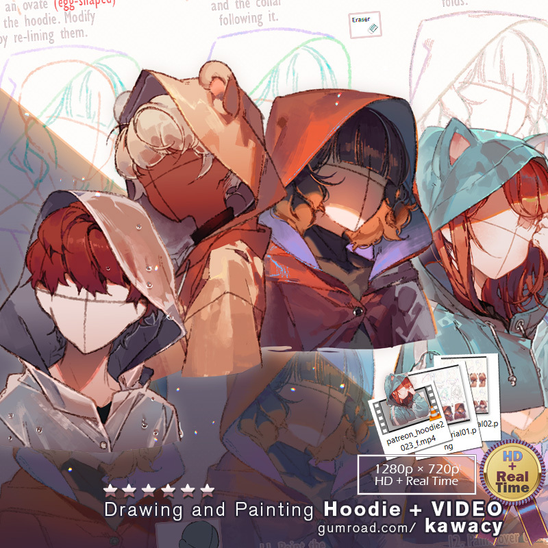 ※Full-duration (1hr 7min 42sec) Progress Video of how to draw Hoodie in illustrations, from sketch to painting.