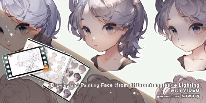 • Full-duration(9min 10sec) Progress Video of how to sketch -> lineart -> color Face (from an angle) + Lighting.